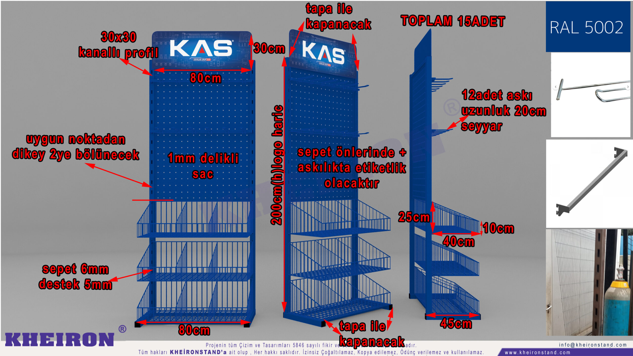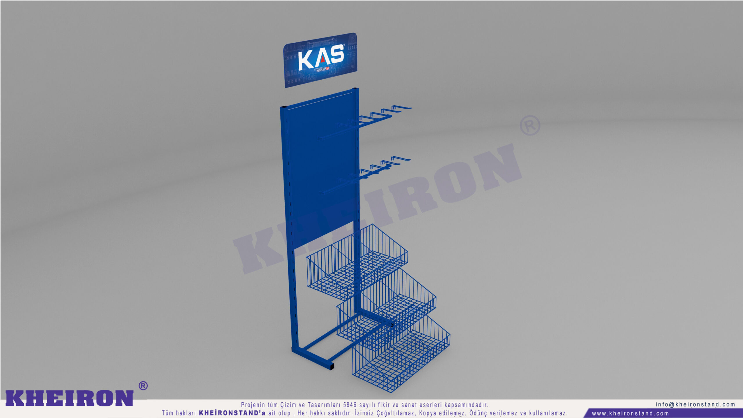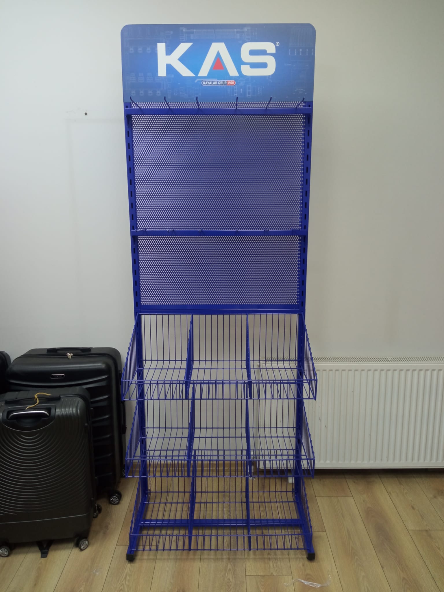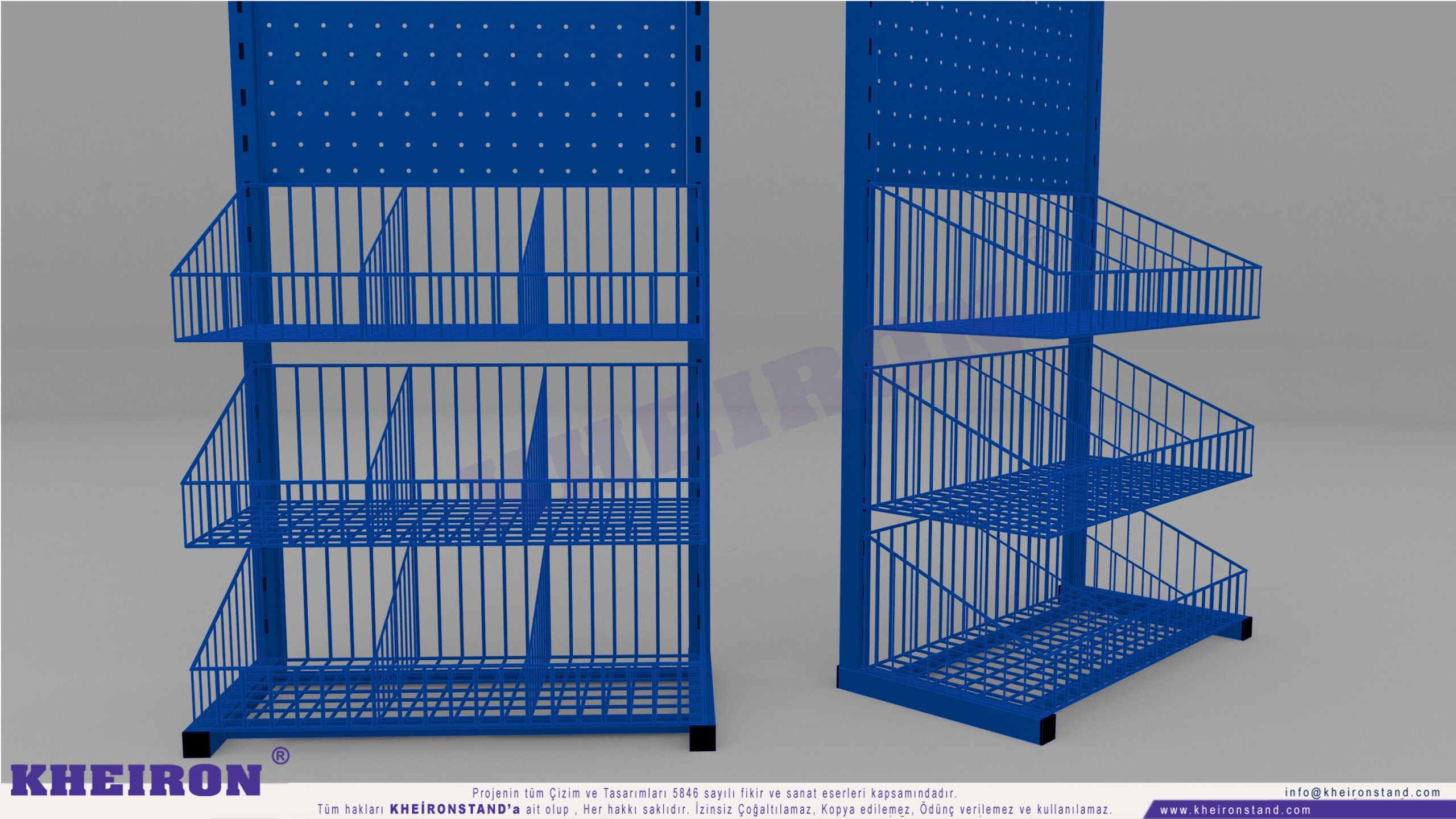 Stand alt bölümde tel sepet alanı sunar. Bu alan dökme teşhir gücü sağlar. Askılı sistem düzen kurar. Sepet alanı hacim kazandırır. Böylece çift yönlü satış alanı oluşur. Bu yapı satış gücünü artırır.