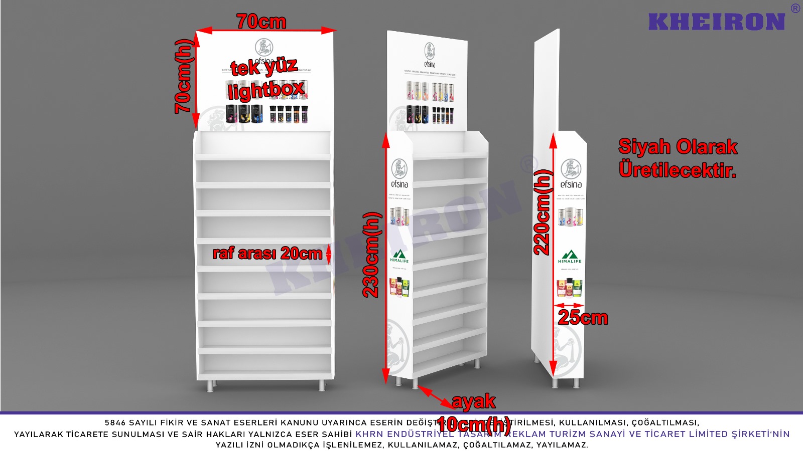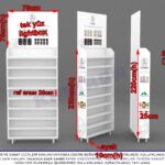 Standın rafları, ürünlerinizi düzenli ve estetik bir şekilde sergilemenizi sağlar. Standın yüksekliğini ve raf aralıklarını müşterilerin kolay erişebilmesi için optimize ettik. Bu sayede, alışveriş deneyimini iyileştirirsiniz. Ayrıca, ahşap malzeme kullanarak doğayla uyumlu bir imaj yaratırsınız ve çevre dostu bir seçenek sunarsınız.