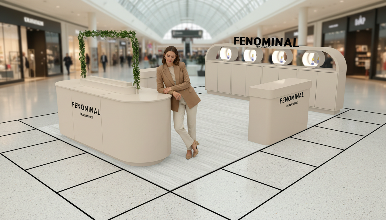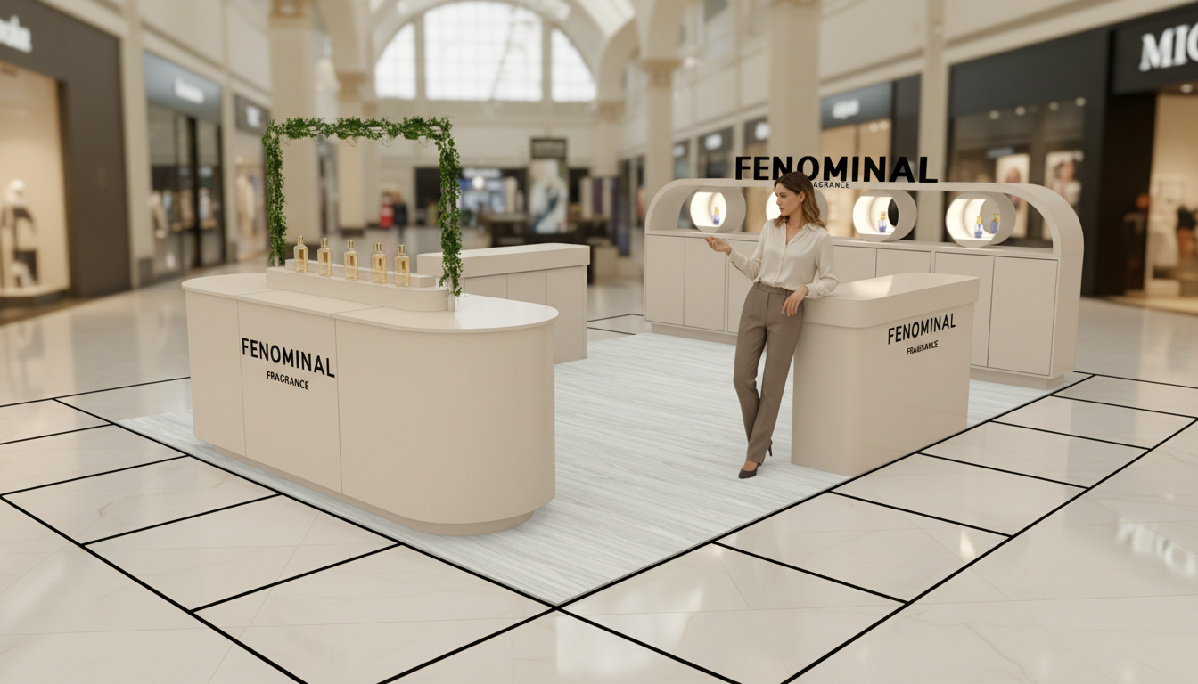 Fenominal Almanya AVM Standı, markanın Avrupa pazarındaki konumunu güçlendiren stratejik bir projedir. KheironStand bu projede tasarım sürecini baştan sona yönetti. Ekibimiz konsepti oluşturdu, üretimi planladı ve tüm detayları titizlikle uyguladı. Böylece Fenominal Parfüm markası Almanya’daki seçkin alışveriş merkezlerinde güçlü bir vitrin kazandı. Bununla beraber stand, yalnızca ürün sergilemedi; aynı zamanda premium bir marka deneyimi sundu.