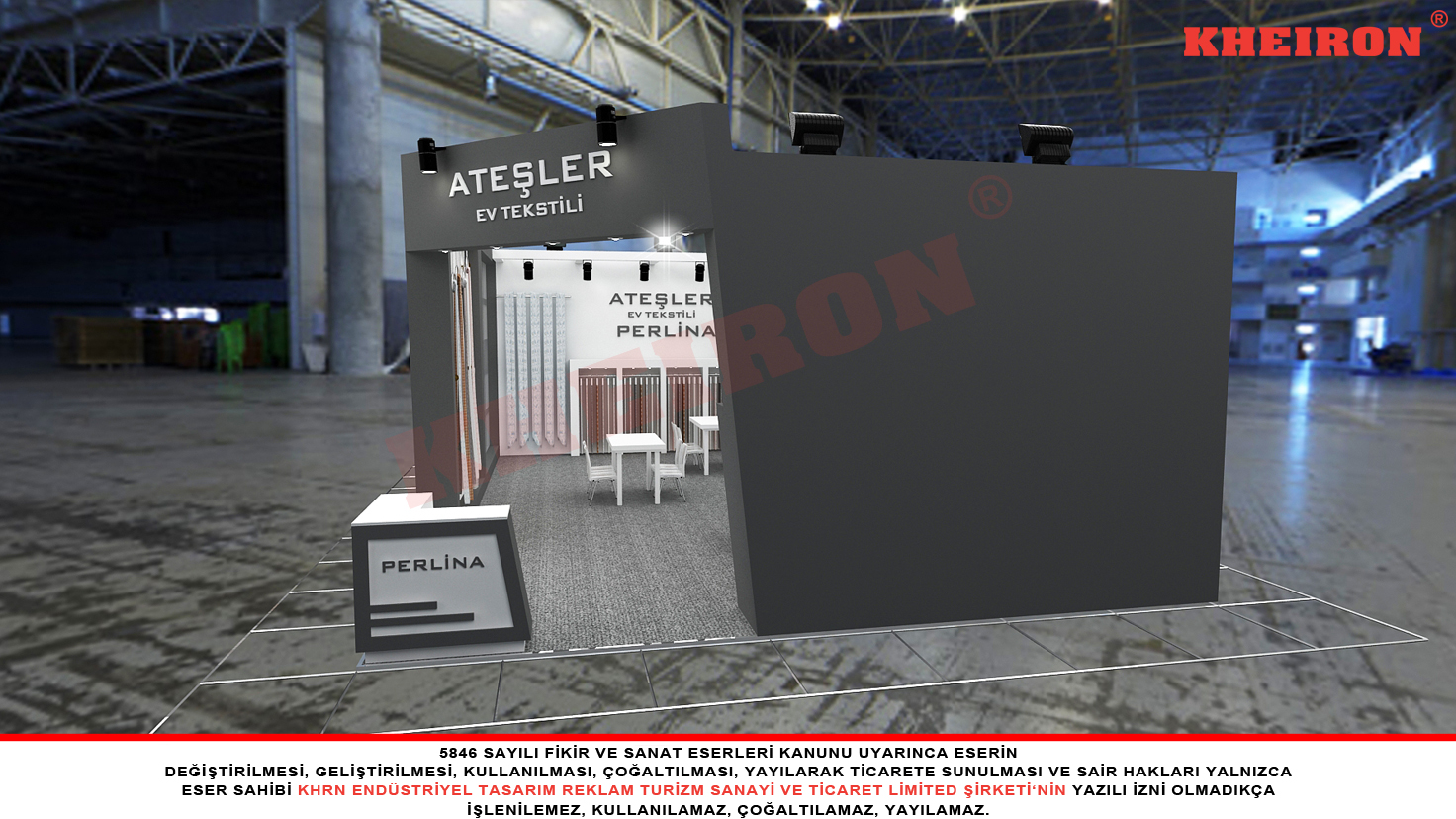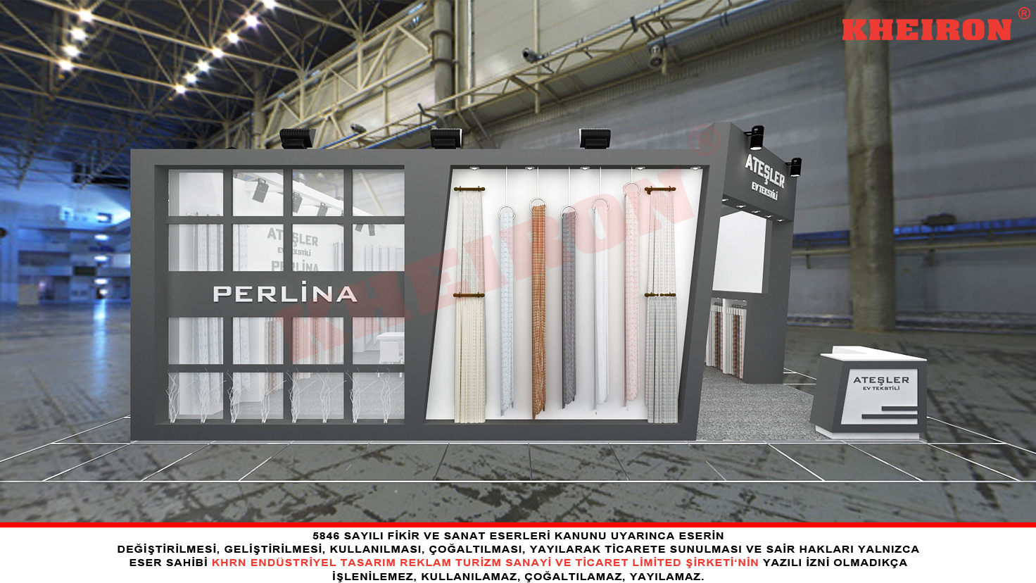 Fuar Standı, uygulama ve tasarım değerlendirilirken öncelikle markanın kendisini konumlandırdığı yer ve satılan bir ürün varsa, ürün teşhiri önem kazanır. Kimi fuarda ürünleri teşhir şekli önemli iken, kimi fuarlarda ise, teşhir edilen ürün sayısı önemlidir. İşte bu Perde Ahşap Fuar Standı için de, sergilenen ürün sayısı önemliydi.