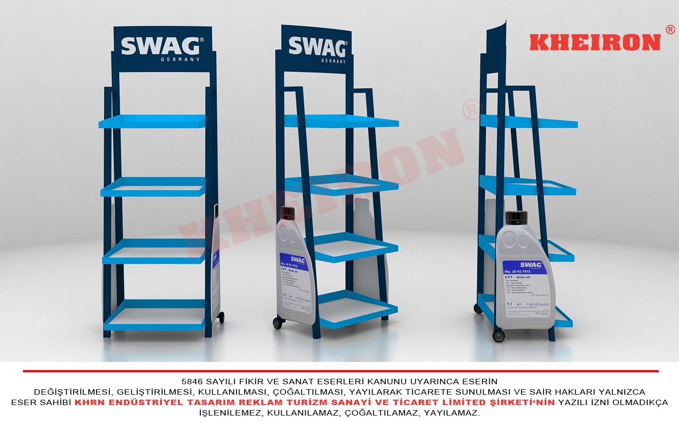 - Bu teşhir ürünü, daha çok benzinlik, otomobil servis hizmet noktaları gibi yerlerde bulunur. Bu da, ağır parçaların stand üstüne düşmesi riskini beraberinde getirir. Benzinlik gibi noktalarda ise, özellikle kapı çıkışının sağında veya solunda yer alabilir.