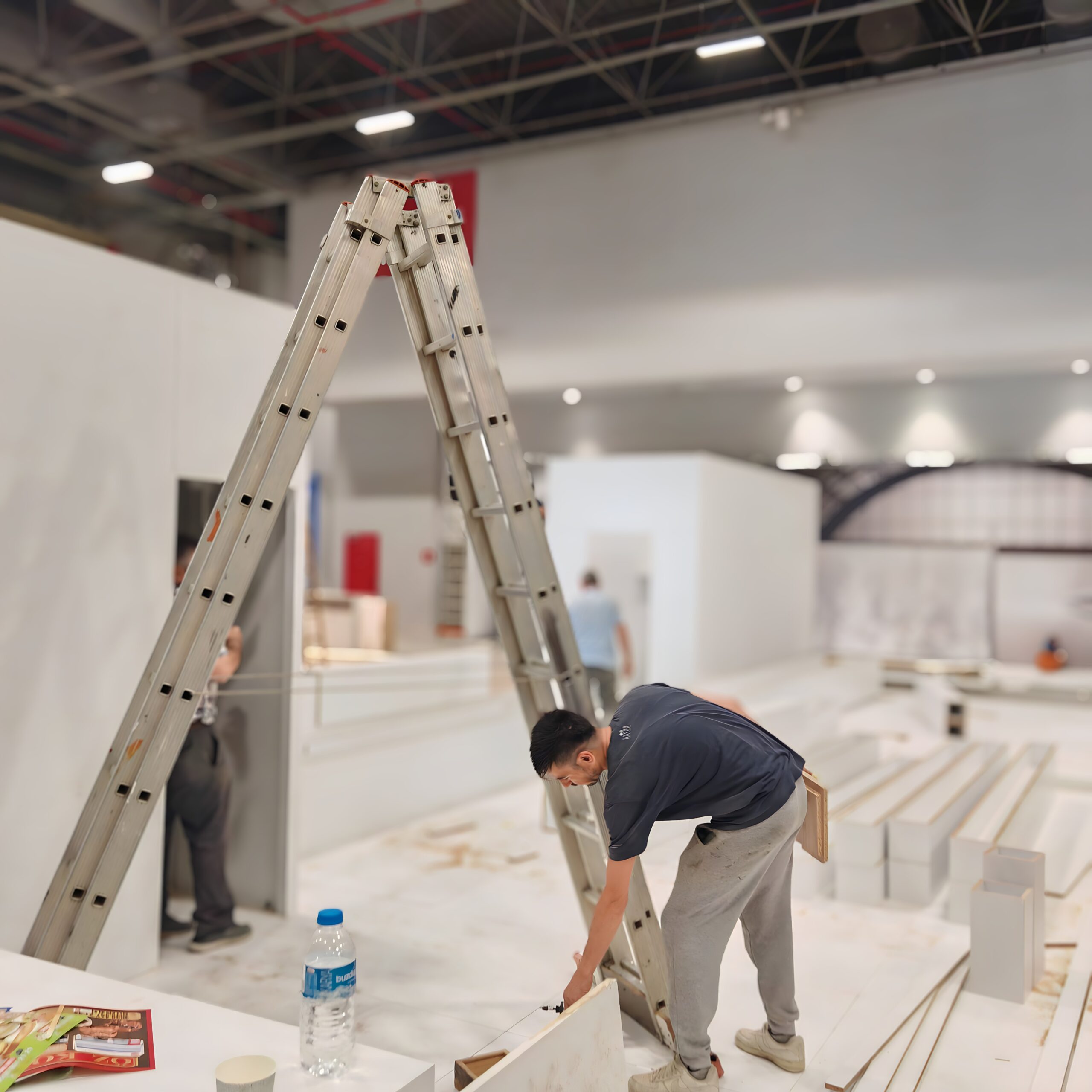 “Yüksek kaliteli malzemelerle oluşturulmuş stand duvar yapıları ve mimari birleşim noktaları.”
